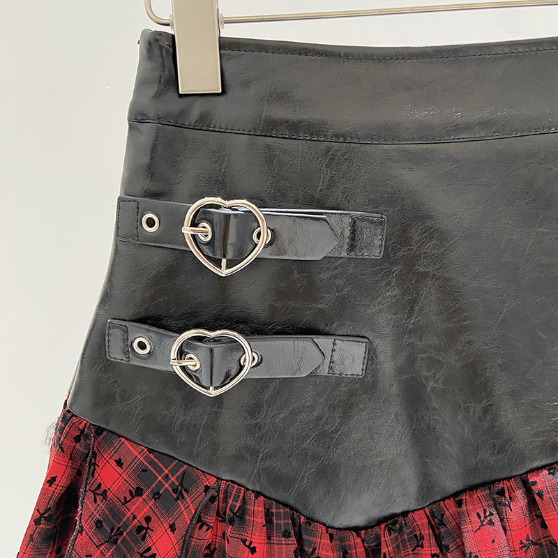 - Heart Buckle Accents: Adjustable buckle details add a punk and romantic gothic touch to the skirt’s waist.